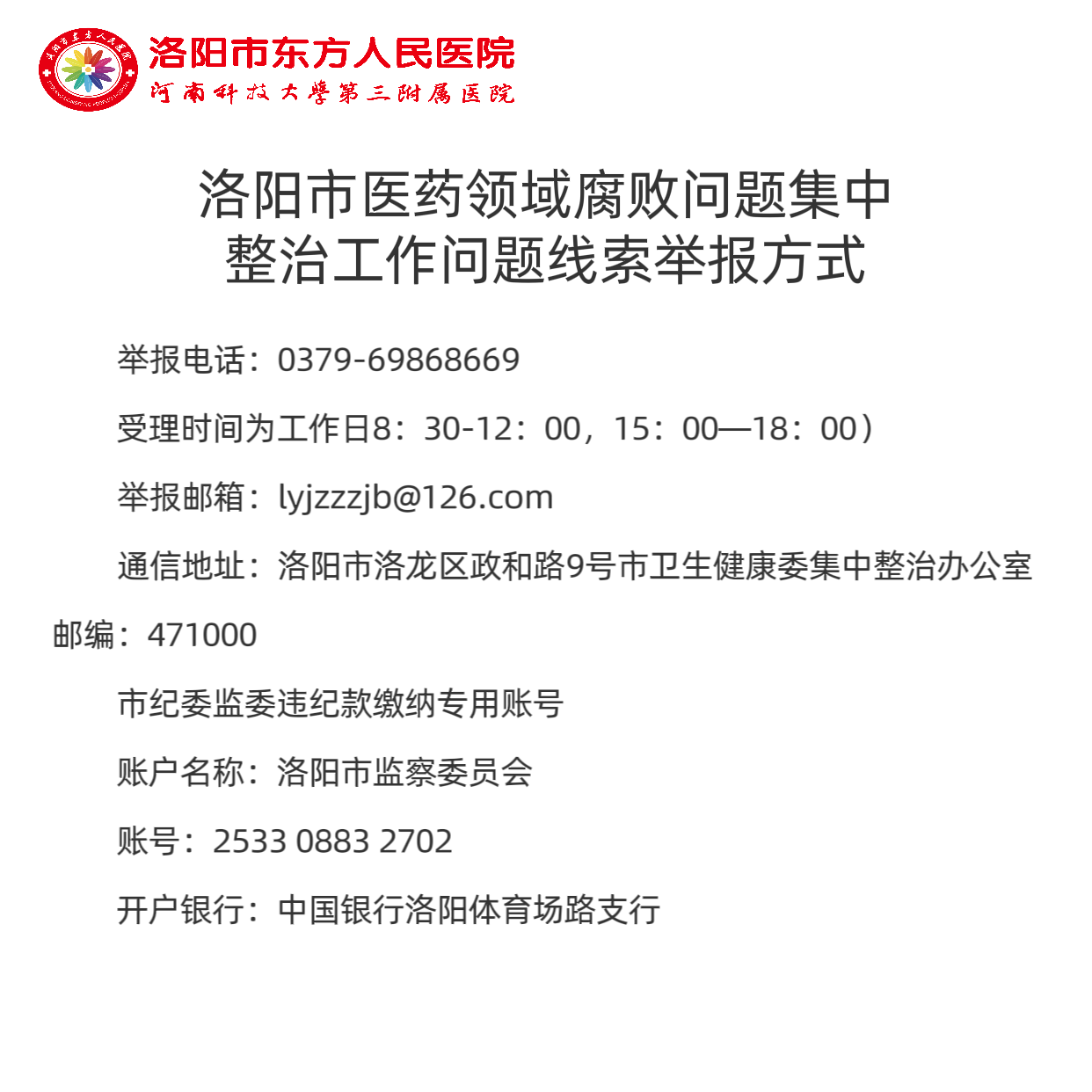 洛陽市醫(yī)藥領域腐敗問題集中 整治工作問題線索舉報方式